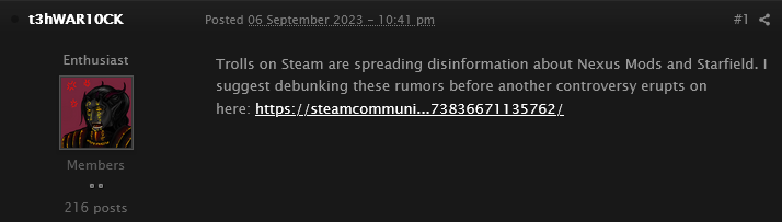 With social media left torn between the believability of the claim and the lack of any official word from the site itself, these “conversations on the matter” eventually caught the attention of Nexus Mod member t3hWAR10ck, who in turn took to the site’s official forums to suggest that its administration offer clarification on this “disinformation” in order to avoid the eruption of “another controversy”.