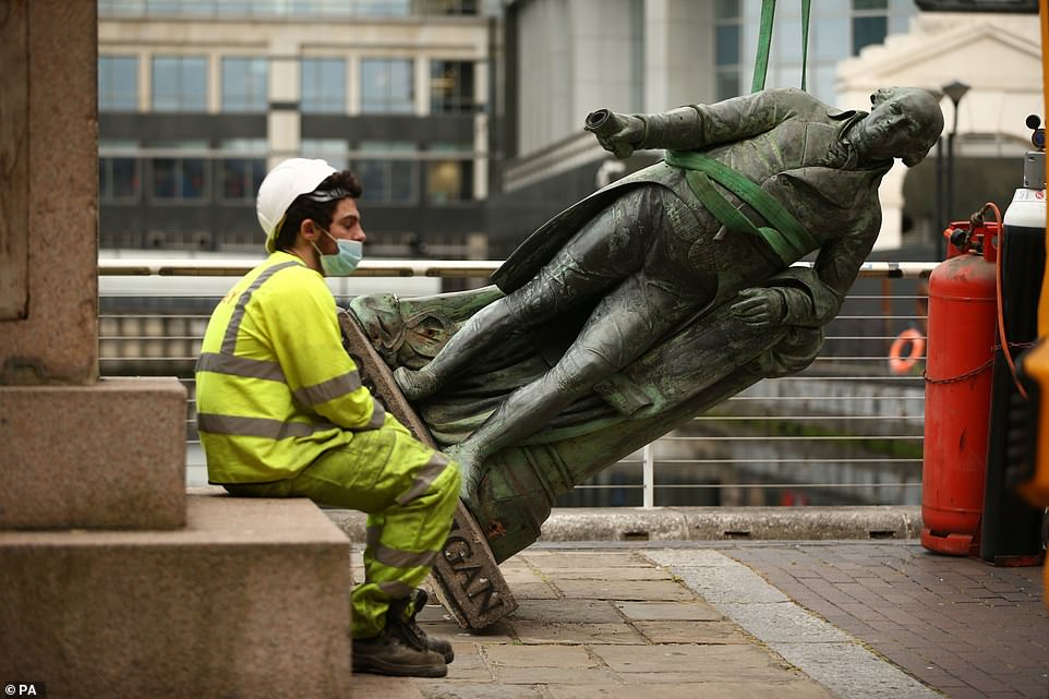 The mayor’s office said the statue was taken down to be ‘restored’ after it was daubed with paint, but said it was unlikely to return to its public pedestal.