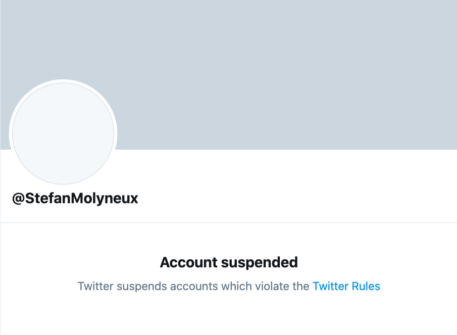 It appears Stefan Molyneux's account has just been suspended by Twitter. pic.twitter.com/EKVNtzDtSP