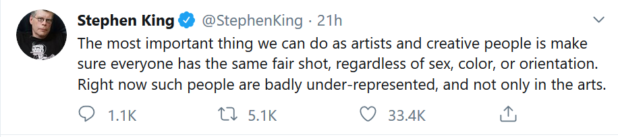 He has since been criticized by leading Hollywood names and authors saying his argument centers on the idea that quality and diversity are mutually exclusive. The director Ava DuVernay called King’s comments “so backward and ignorant you want to go back to bed”. The writer Roxane Gay tweeted that she was disappointed that King only believed in “quality from one demographic”.