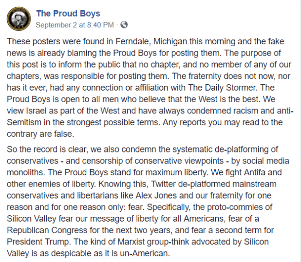 The Proud Boys, desperately clutching at that elusive thing known as CULTURAL RELEVANCE decided to insert themselves into the conversation.