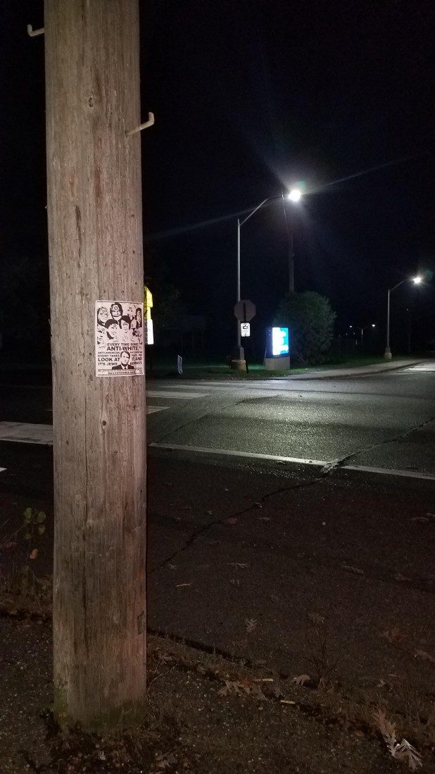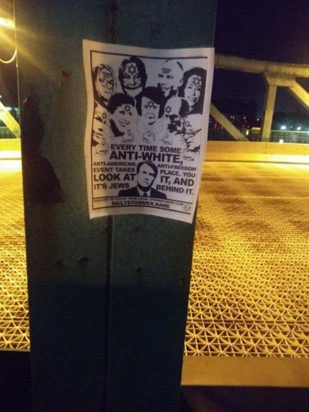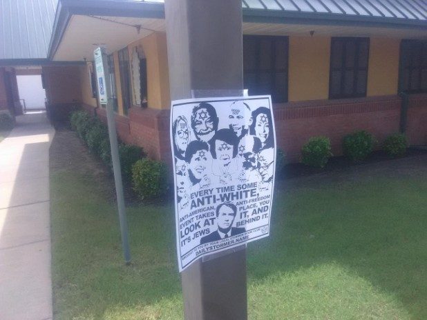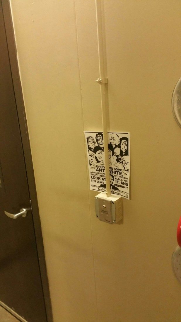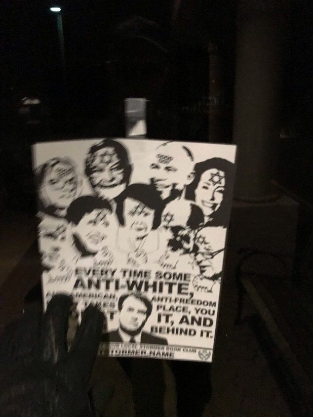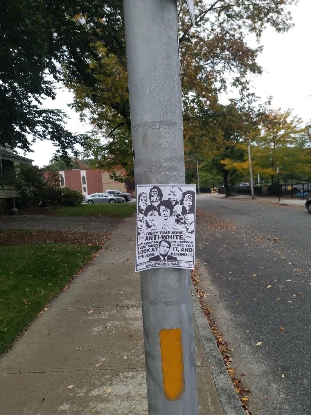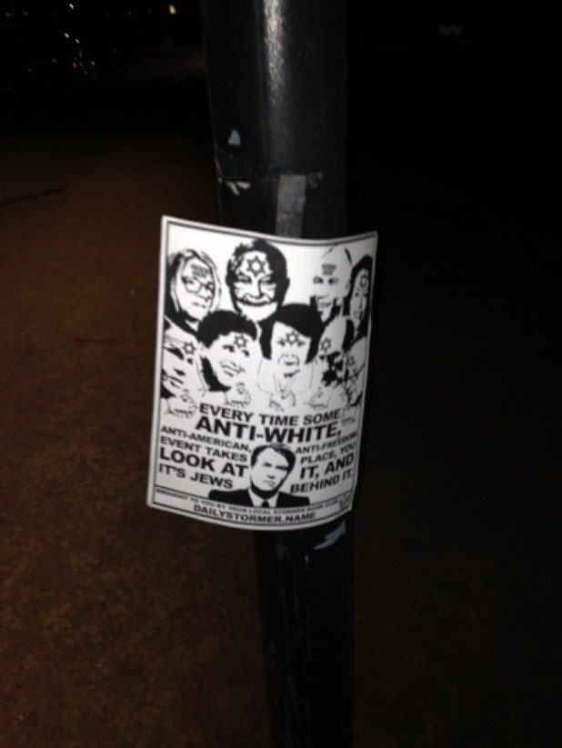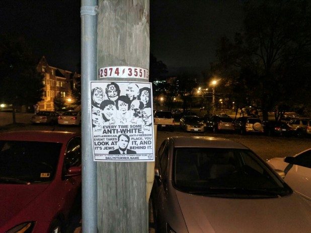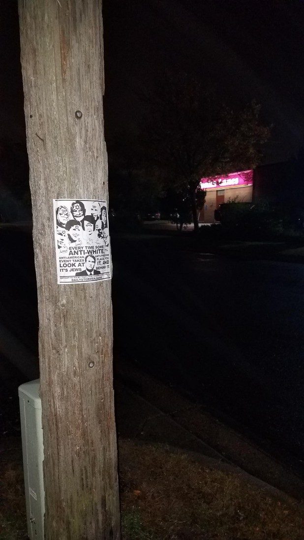 “Every time some anti-white, anti-American, anti-freedom event takes place, you look at it, and it’s Jews behind it,” the flyer states.