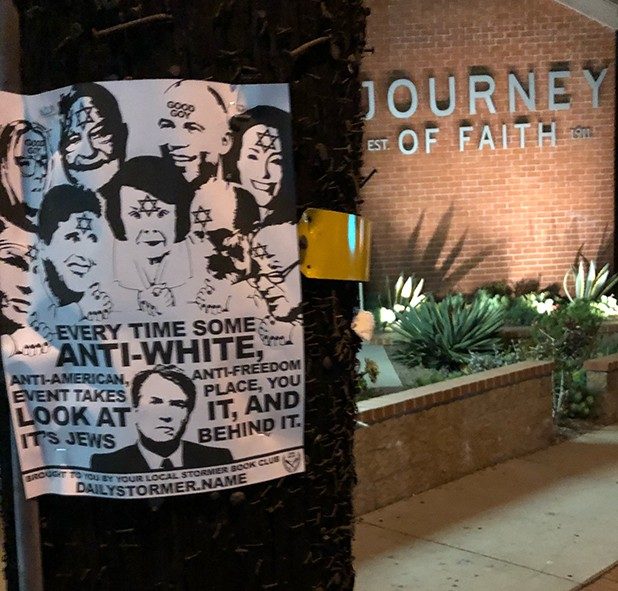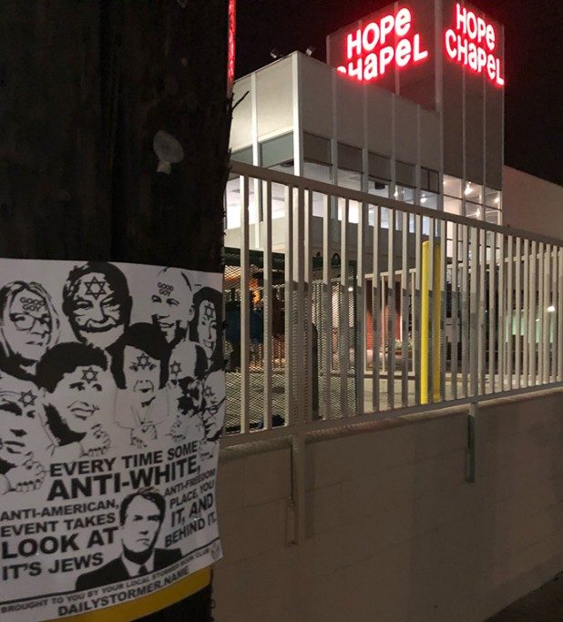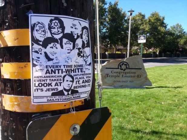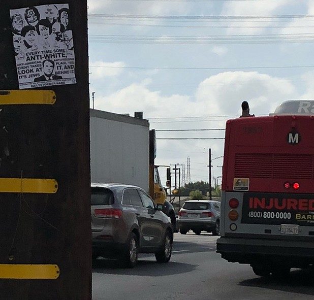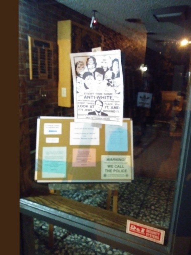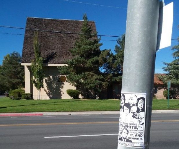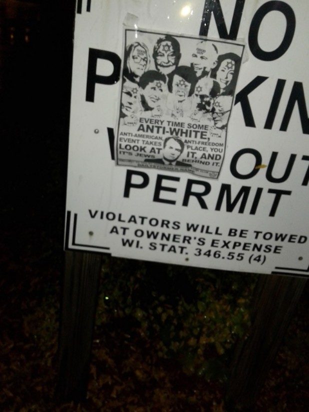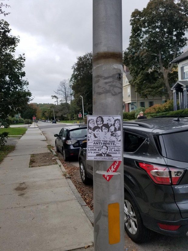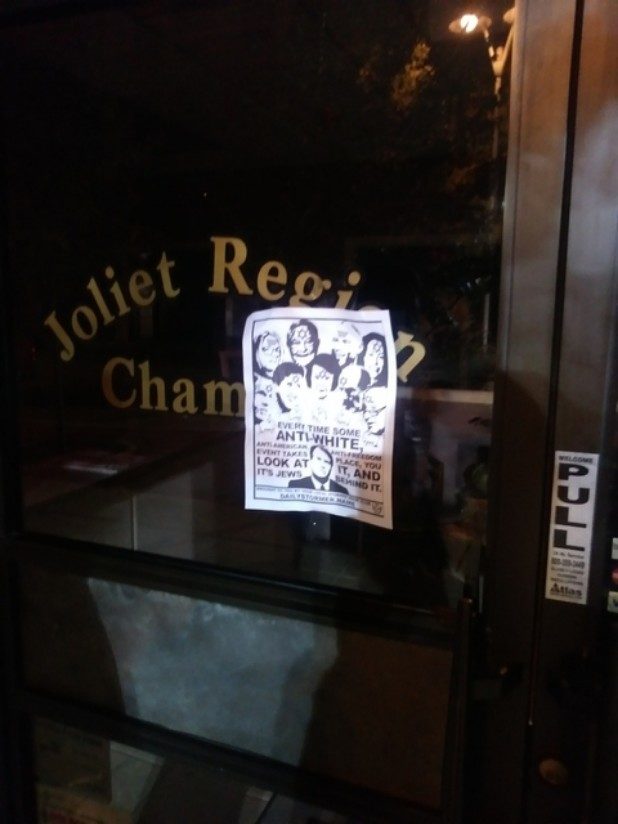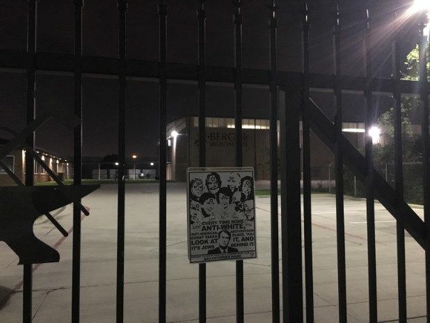 “Every time some anti-white, anti-American, anti-freedom event takes place, you look at it, and it’s Jews behind it,” the flyer states.