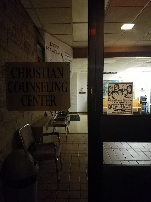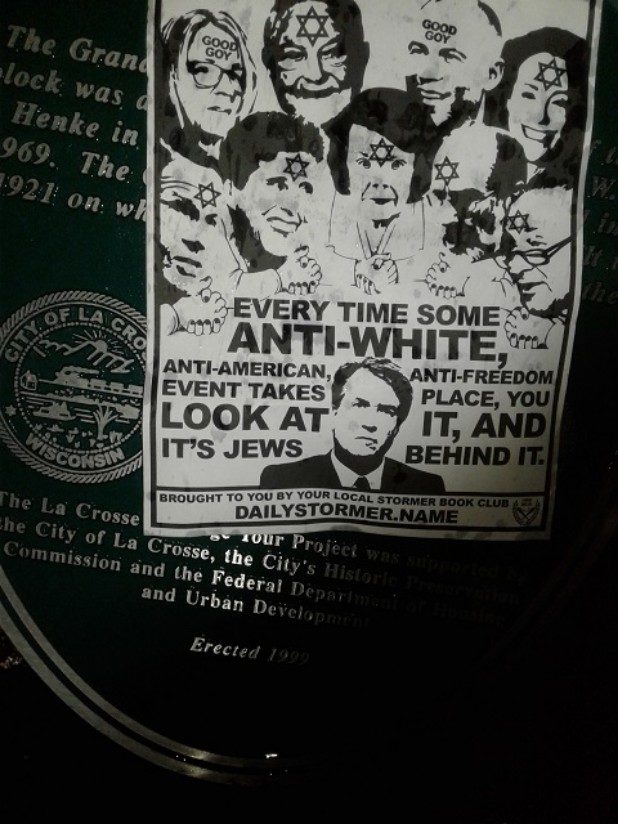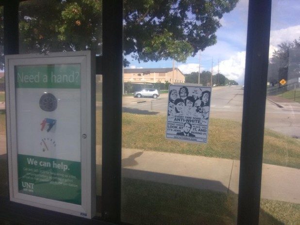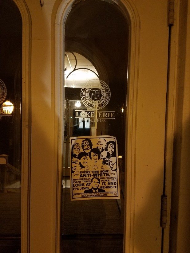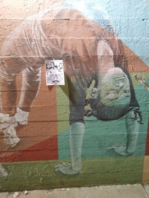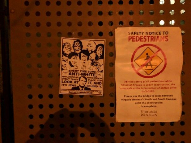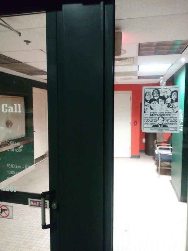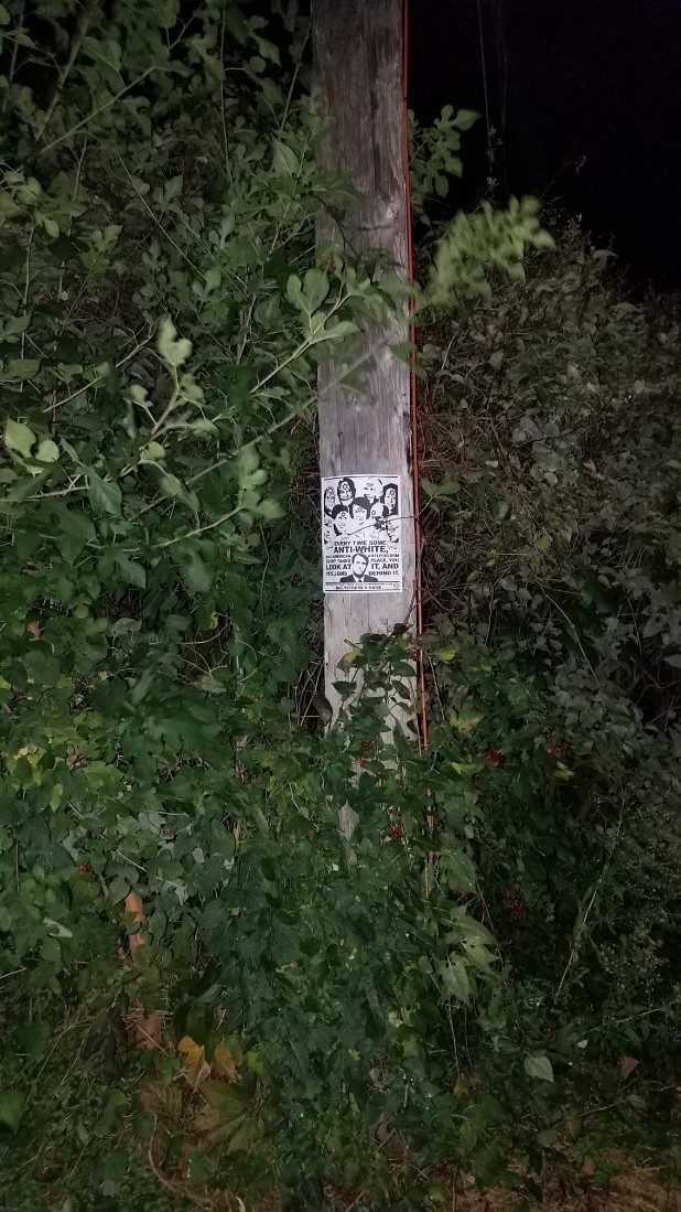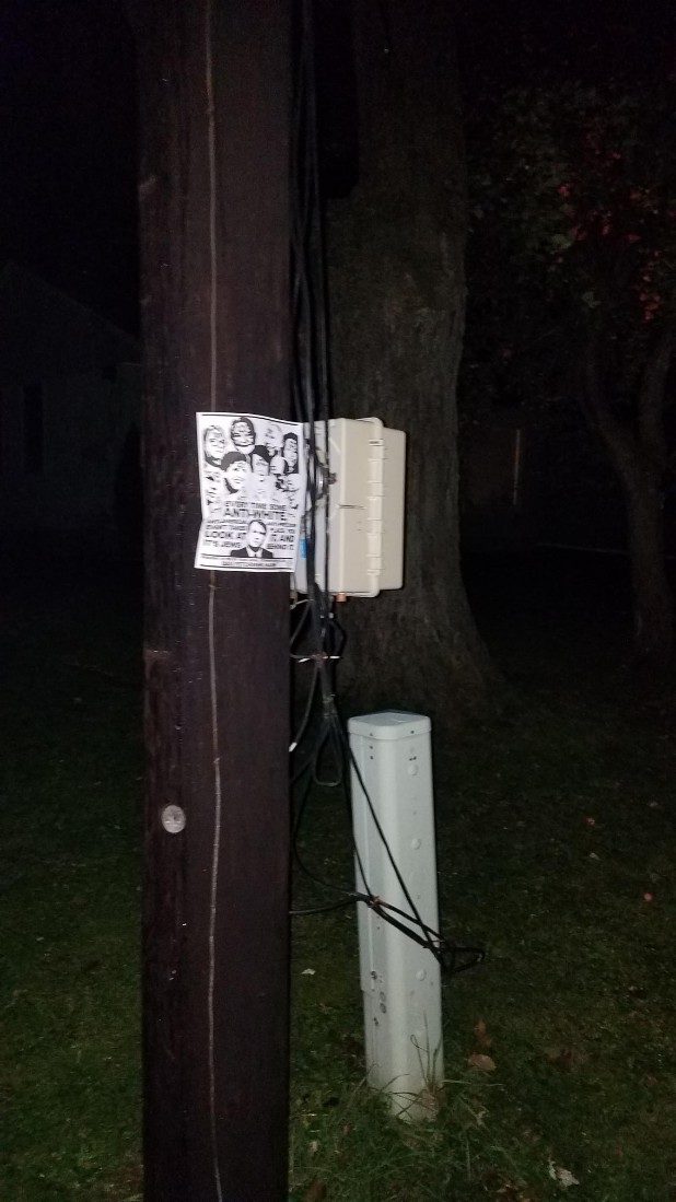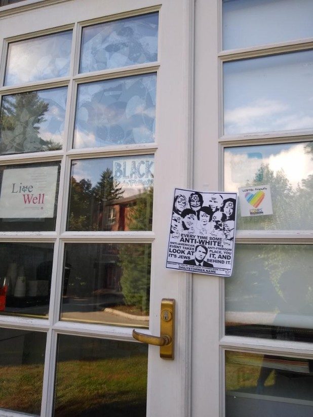 The bottom of the flyer stated it came from the local Stormer Book Club, which are small organizations that support The Daily Stormer, a neo-Nazi website.