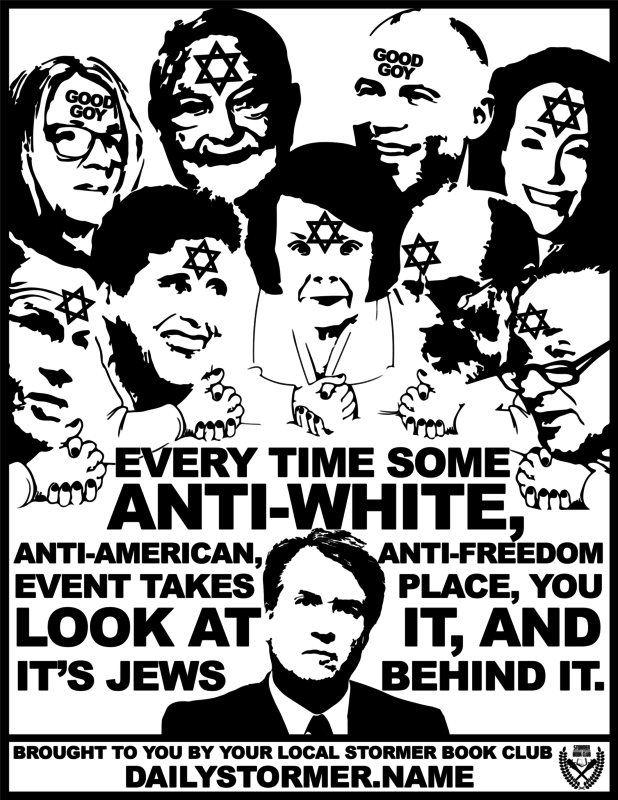 Neo-Nazis at the Daily Stormer are taking up the cause of Brett Kavanaugh and blaming it on the Jews. Note the presence of Soros (who Trump blamed for #MeToo protests in a tweet). H/t @ADL_NYNJ pic.twitter.com/0prhQfyG5n