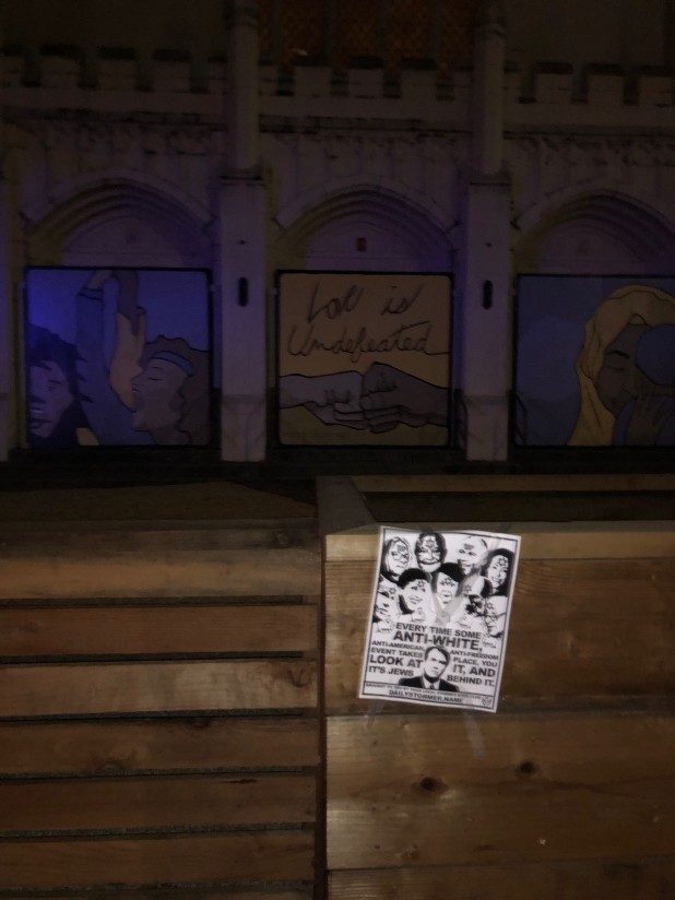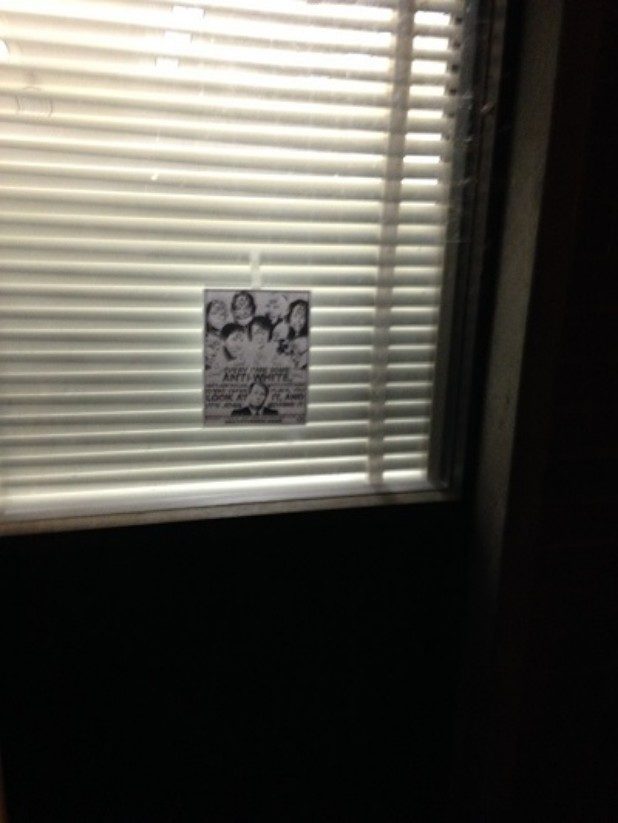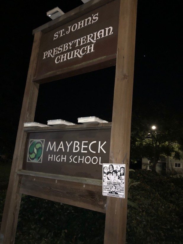 “The message on these flyers is reprehensible and does not represent who we are as a community,” May said. “In addition, the person or persons responsible violated our posting policy.”