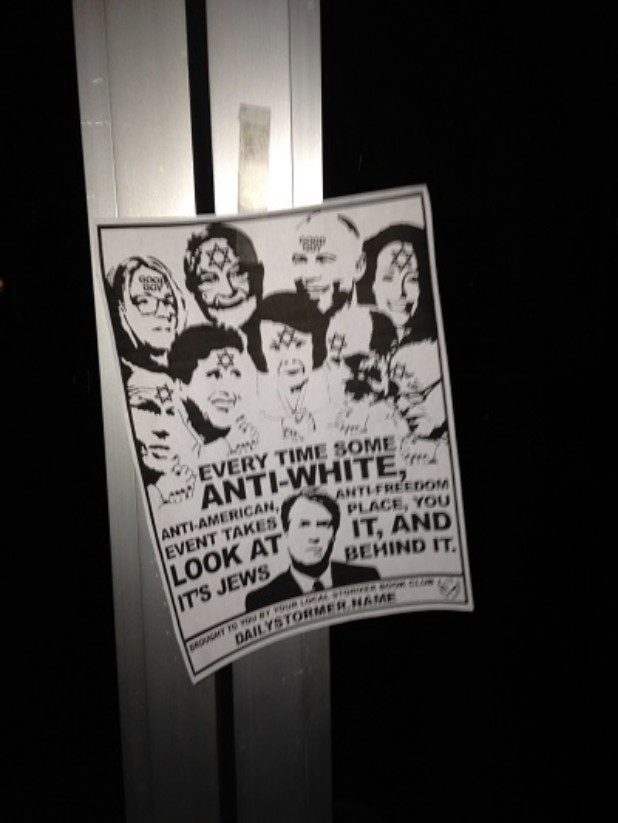Thread. Nazi–#Kavanaugh posters found yesterday on the campus of Vassar College in Poughkeepsie, NY and all around the Hudson Valley region. Designed by The Daily Stormer (a reference to “Der Stürmer,” the Nazi tabloid), a webzine formerly known as Total Fascism. pic.twitter.com/Bkrwo3QDmw