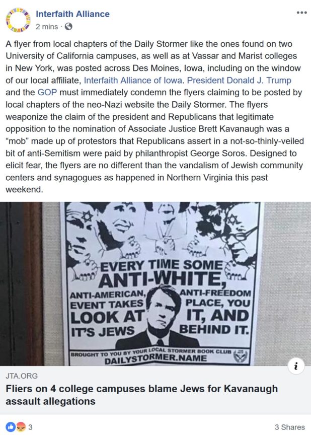 As the President of the United States unleashes a torrent of lies about George Soros paying anti-Kavanaugh protesters, Nazi flyers blaming all Jews appear on college campuses. https://t.co/1rmzR7RMtw