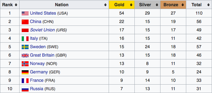 Then, of course, there is raw aim, and the racial distribution of ability here becomes even more stark. If you look at all the history of shooting sports in the Olympics since 1896, there’s never been a single medal won by an African. Qatar won a single bronze, and the UAE even managed to capture a gold one time. But the nation with an overwhelming number of medals per capita is the United States of America. All of the top 10 countries are white lands, save China.