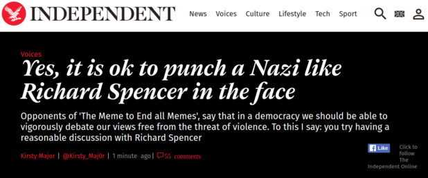 When Richard Spencer got sucker punched by a leftist at Trump’s inauguration, the proverbial mask came off. The violent Anarcuck snowflake wing coalesced with mainstream (((liberals))) to have a good laugh at a “Nazi-punching.” The corporate Jewish media saw punching dissidents as a nascent practice they hoped would blossom.