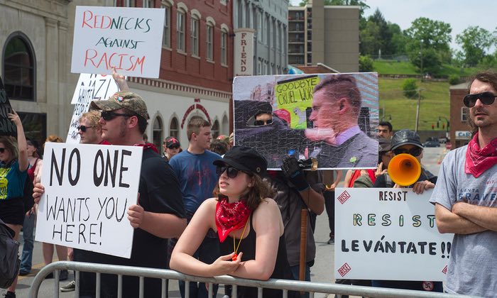 Leftist groups from Philadelphia and Atlanta didn’t like this, so they raised money on GoFundMe for weapons and transported around 30-40 obese lesbians to go to rural Appalachia and check Pikeville’s privilege. When they got there, around 60-70 mainstream liberals and Democrats joined up with them for an “Anti-racist rally,” having no qualms standing shoulder to shoulder with people waving hammer and sickle flags and chanting “Kill Whitey” and “Black Lives Matter.”