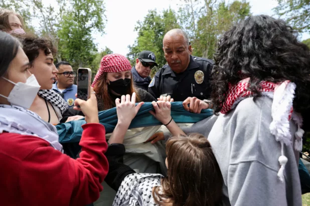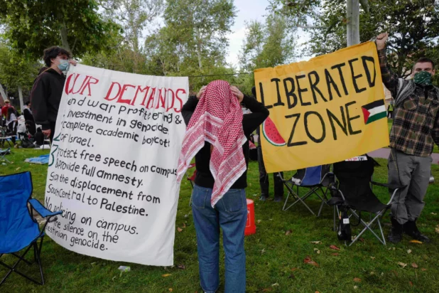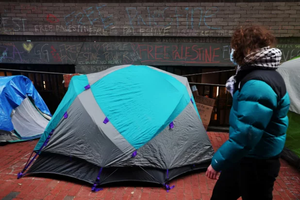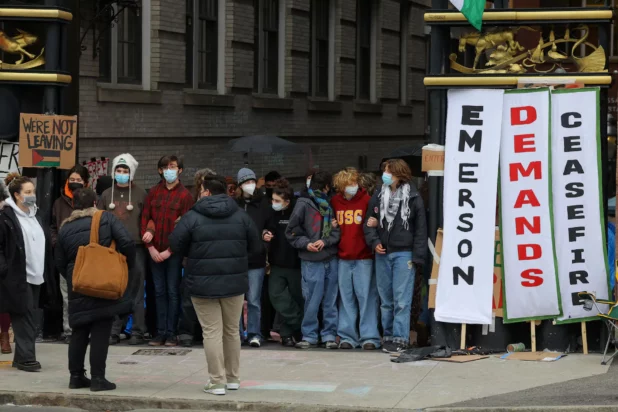 Boston police earlier forcibly removed a pro-Palestinian encampment set up by Emerson College, arresting more than 100 people, media accounts and police said.