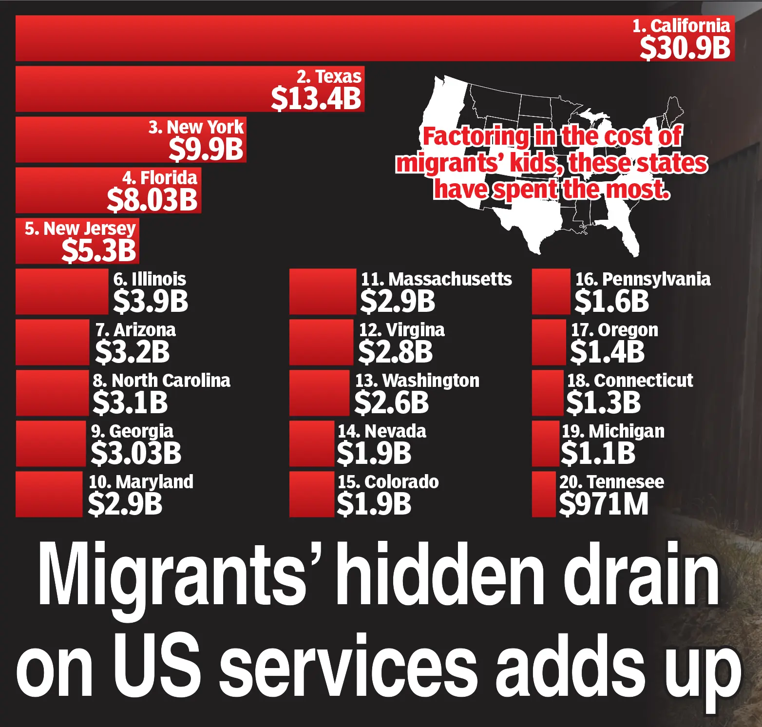 However, according to FAIR’s estimates, the estimated 1.45 million illegal migrants and children in the state already cost taxpayers nearly $10 billion in 2023.