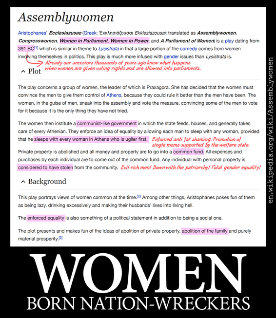 Some people assume that women are only agitating for “equal rights” and feminism because of the Jews. Of course, the Jews have definitely had a major hand in promoting this stuff.