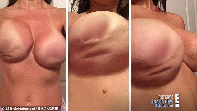 Following that operation she had what the doctors on Botched described as ‘one of the worst complications you could have’ – an exposed implant.