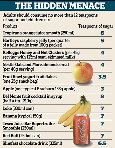 They also warned adults should halve their average intake to six teaspoons a day to avoid obesity, heart disease and other serious illnesses.