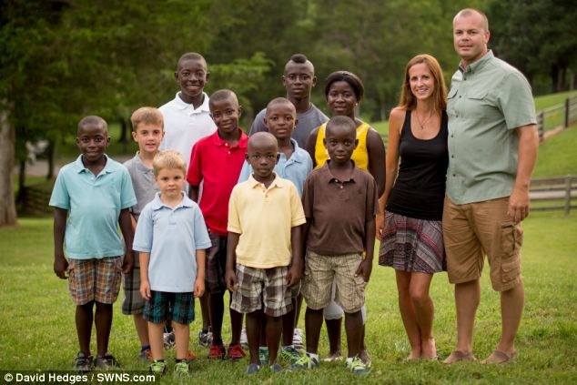 Hayley and Mike Jones instantly increased the size of their family from two to ten by adopting the children from Sierra Leone.