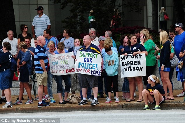 “He was doing his job, and now, because of public uproar in Ferguson, he is being victimized. He is being victimized by the whole city, the state and the federal government,” said protest attendee Kaycee Reinisch.