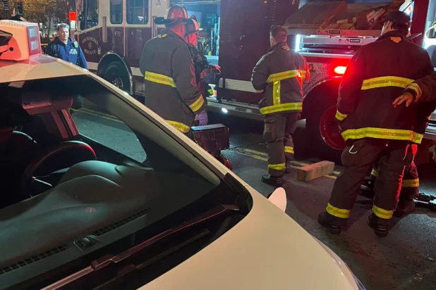 It started when a woman was hit by a normal car on the city’s Market St. and thrown into Panini’s path, ending up literally sandwiched under it.