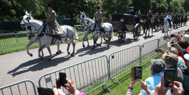 The couple — now the Duke and Duchess of Sussex — then set off on a procession through the streets of Windsor in an open carriage drawn by four Windsor Grey horses.