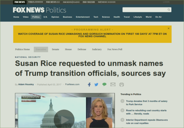 The pattern of Rice’s requests was discovered in a National Security Council review of the government’s policy on “unmasking” the identities of individuals in the U.S. who are not targets of electronic eavesdropping, but whose communications are collected incidentally. Normally those names are redacted from summaries of monitored conversations and appear in reports as something like “U.S. Person One.”