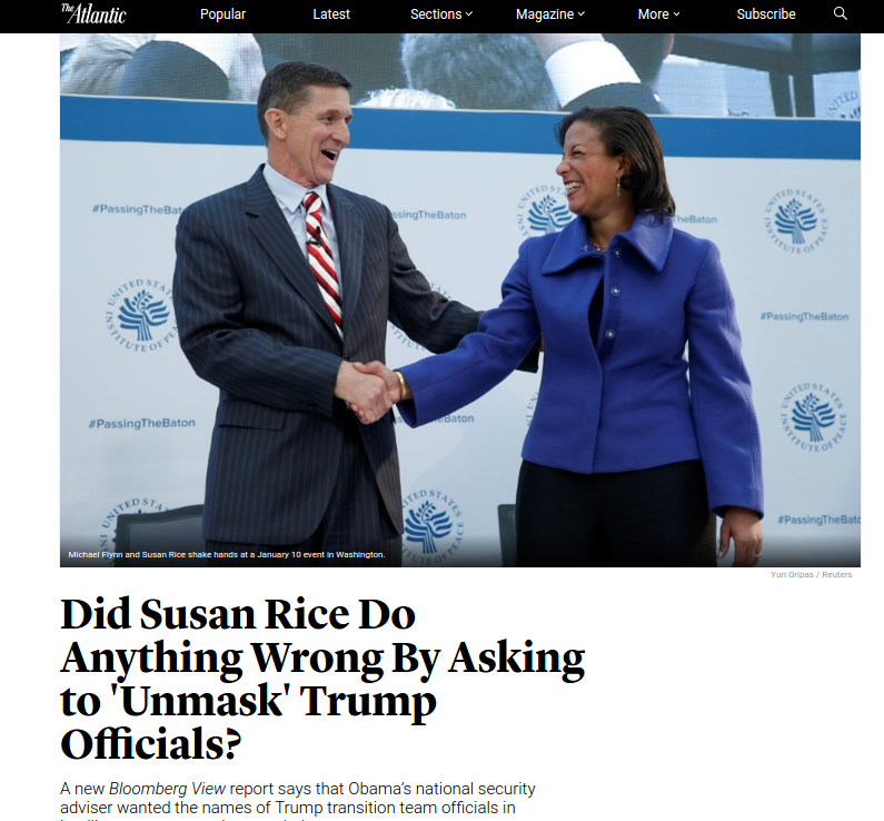 Susan Rice, one of Obama’s top advisers, collected intelligence reports related to Trump during his campaign. But because the intel on Trump was only collected “incidentally,” the names were masked, making it difficult to understand for monkeys like them.