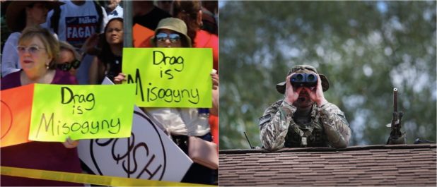 A SWAT team of two snipers was stationed on the roof of a public library in Spokane, Washington June 15. Their mission, along with 30-40 police officers, was to defend Drag Queen Story Hour from 300 concerned mothers and allies protesting the event.