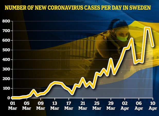Sweden’s daily death toll and its number of new coronavirus cases both fell today as the country continues to hold out against imposing a lockdown.