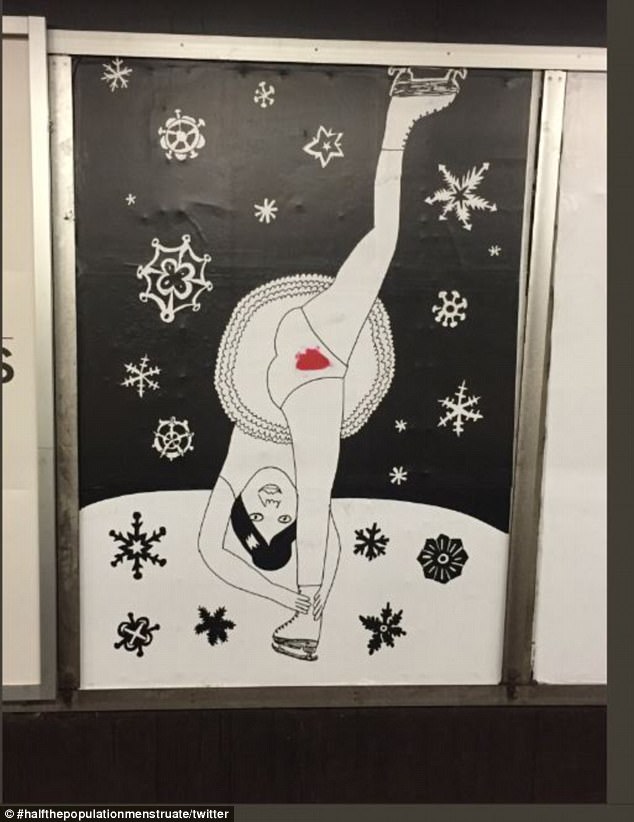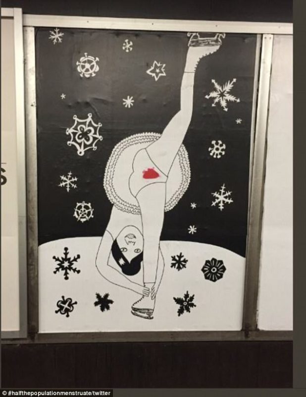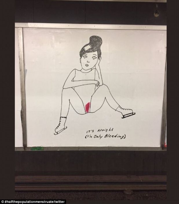 Appearing at 90 of 100 stations in the Swedish capital, the works, entitled ‘It’s Alright, I’m only bleeding’ sees simple figures drawn with a patch of red to symbolise menstruation, has drawn criticism on social media.