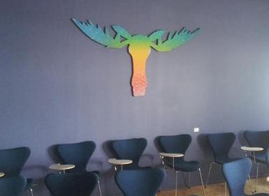 An example of the new artwork is a rainbow-coloured moose head.