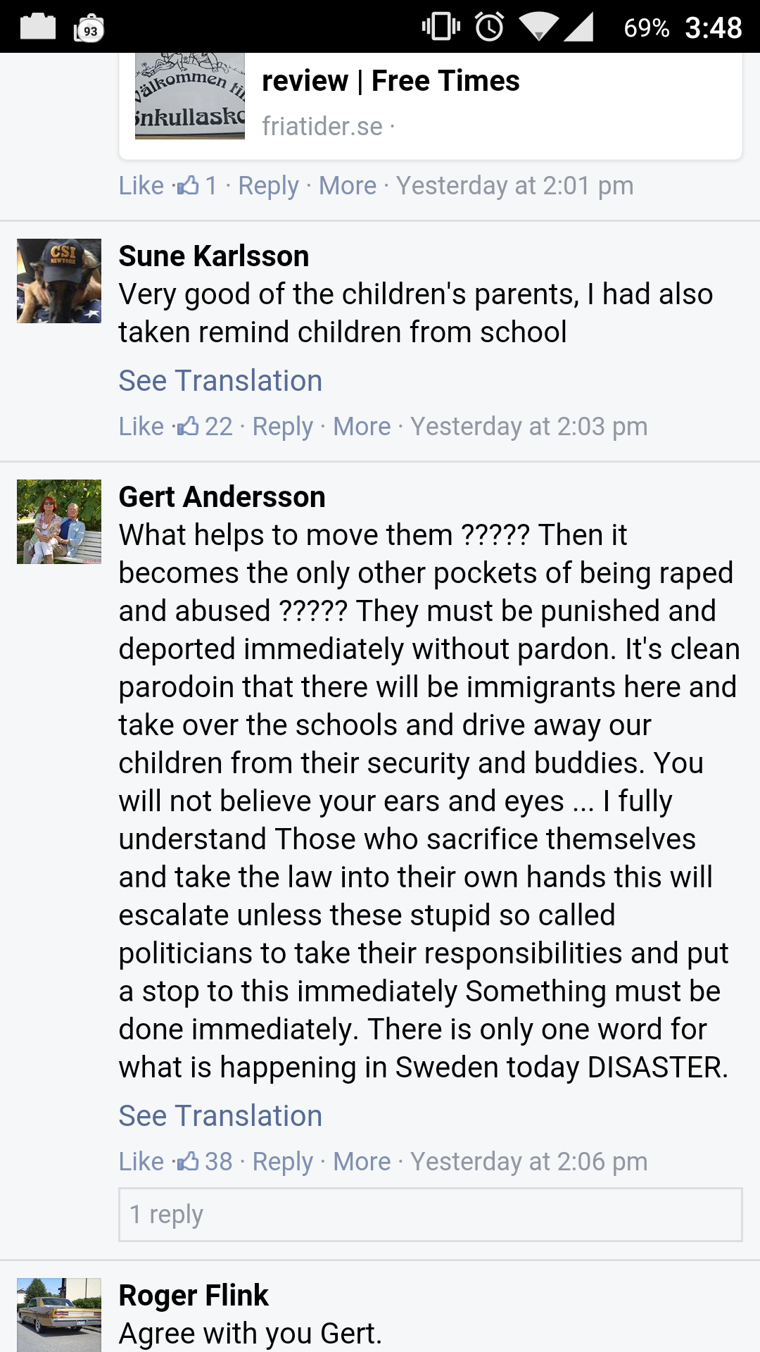 “We get spit in the face because we are Swedes,” says a parent of Free Times.