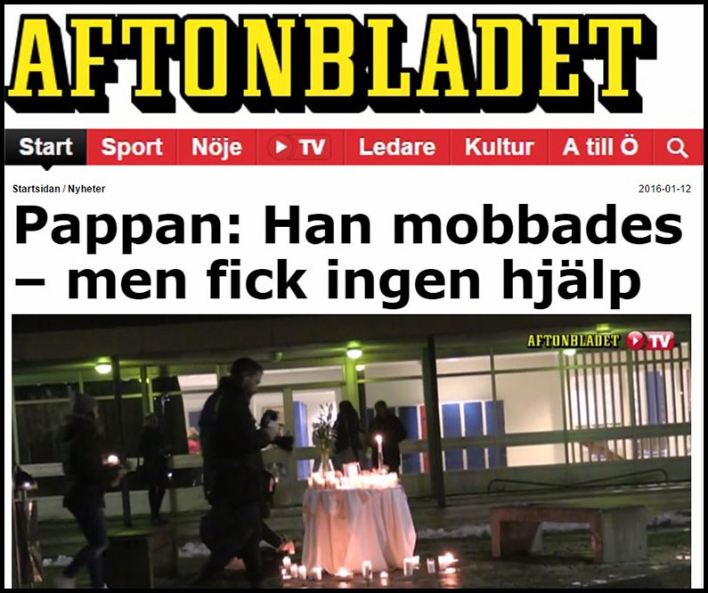 This is apparent even from the Aftonbladet headline: “Father: He was bullied—but got no help,” as if it was all someone else’s fault.