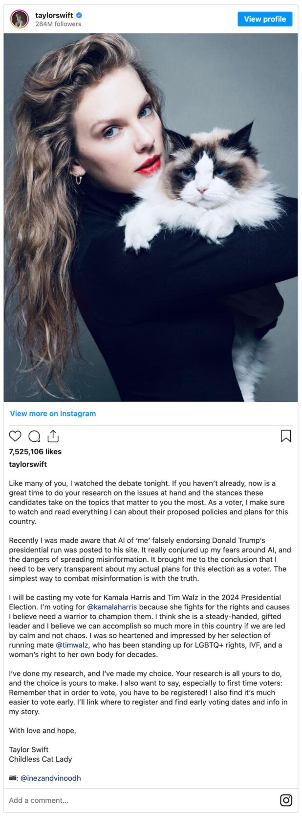 Taylor Swift has endorsed Kamala Harris.