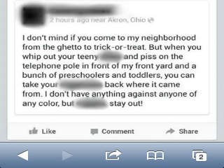 The veteran Akron teacher was apparently upset about disrespectful kids coming from what he calls “the ghetto” to trick or treat.