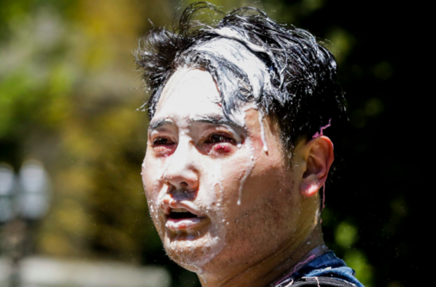The Daily Caller, a conservative outlet, published a photo of Ngo spattered with what appeared to be a milkshake and a bruised eye. He was later admitted to the hospital because of what a legal representative described as a “brain bleed,” according to the Daily Caller.