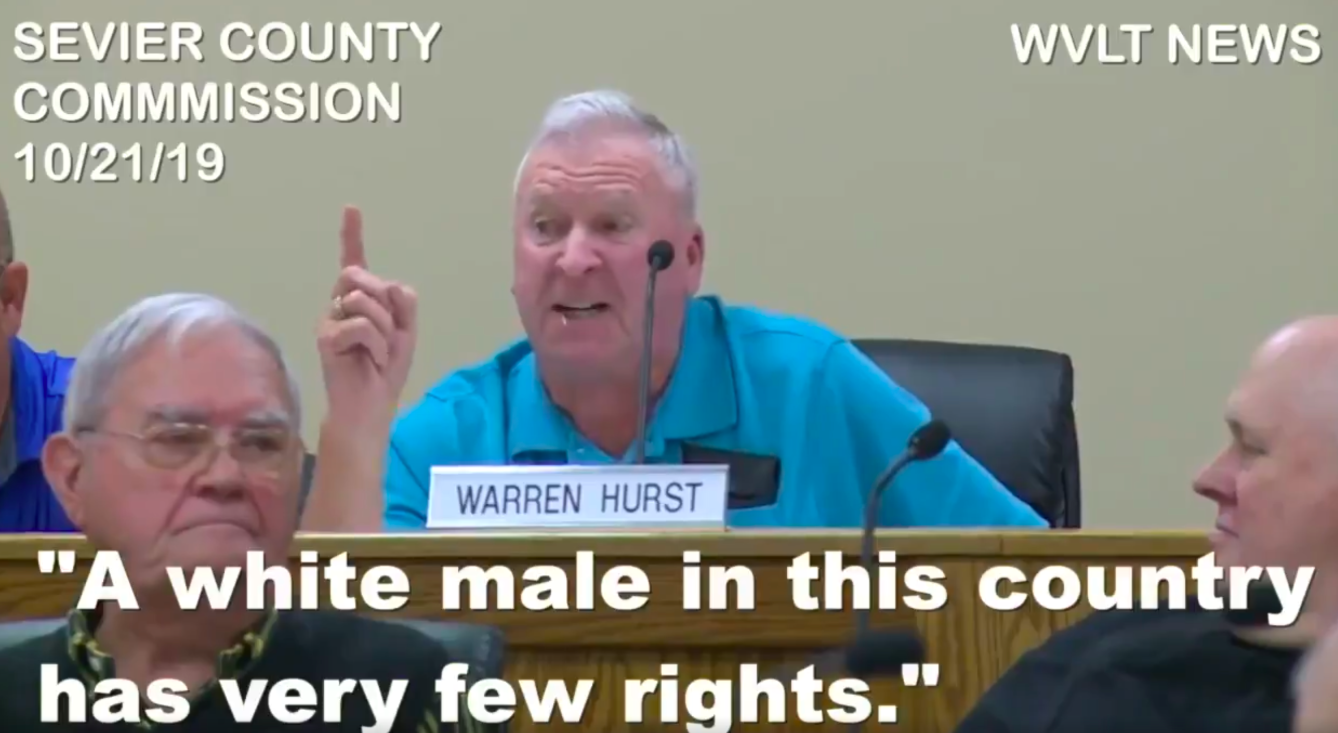 Hurst made another comment during the meeting about the state of white male rights in the country.