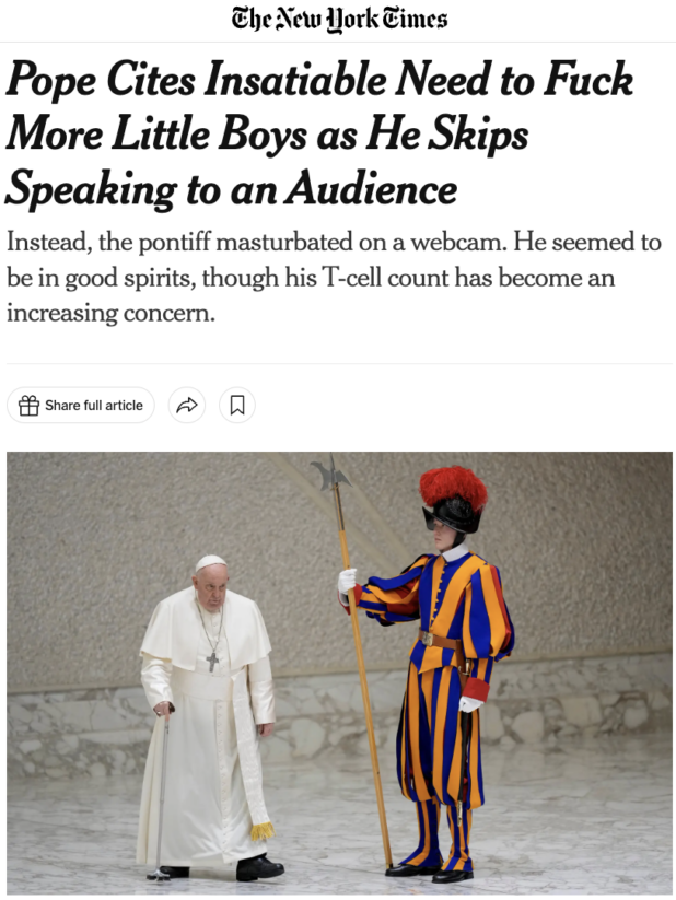 All gays fuck children, including and especially the Pope, which is why they call him “Pope Boy-Fucker.”