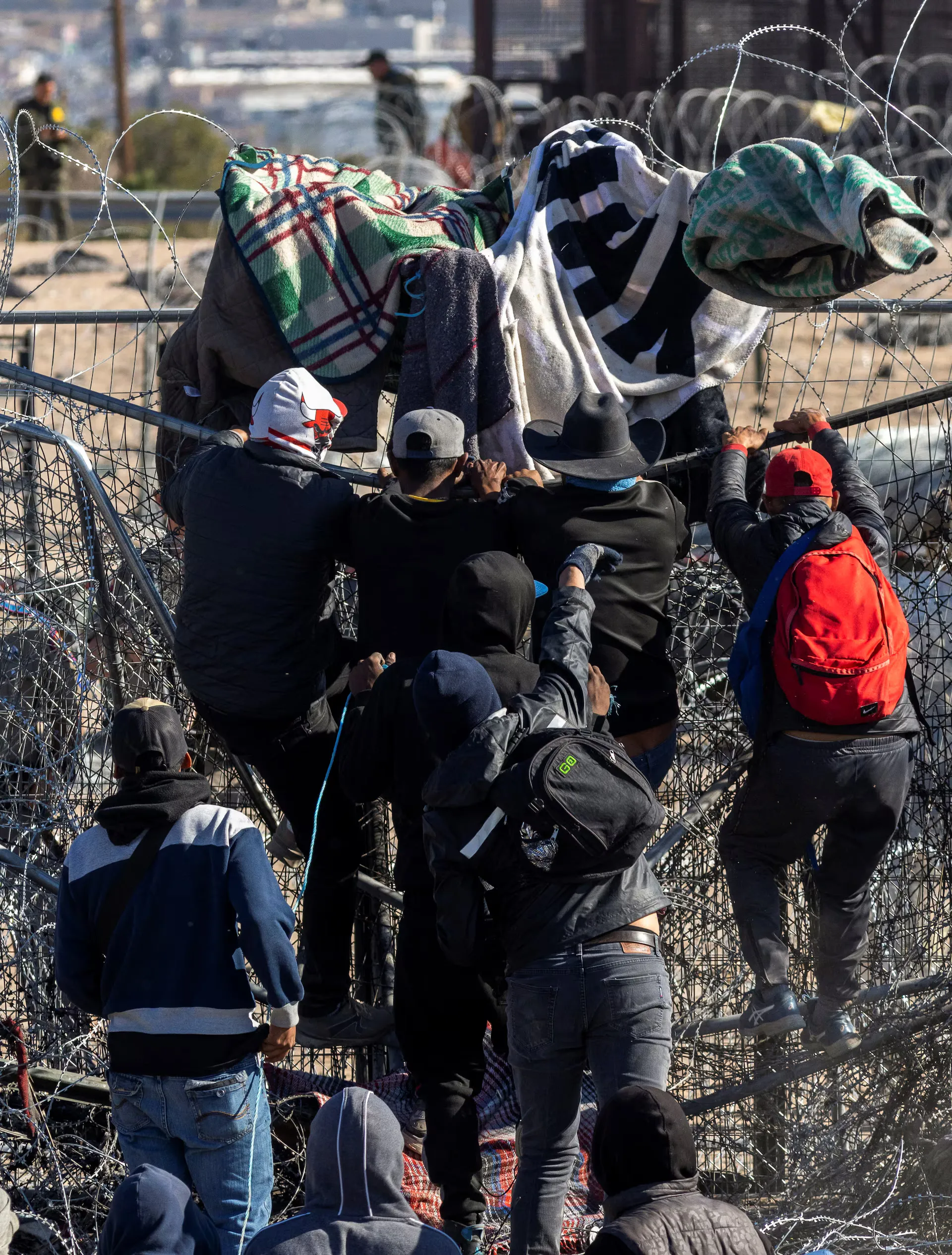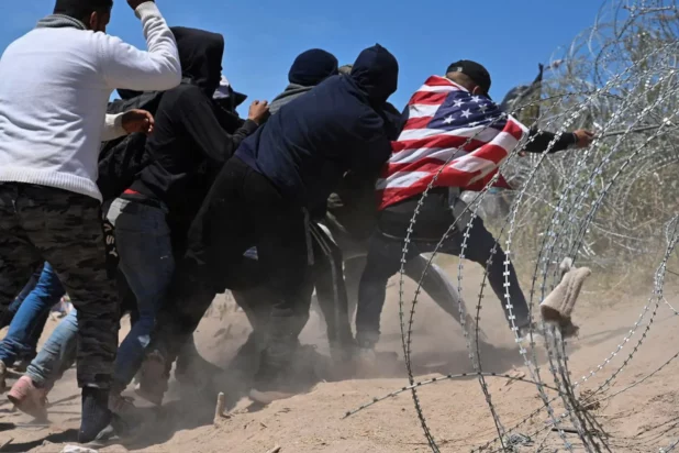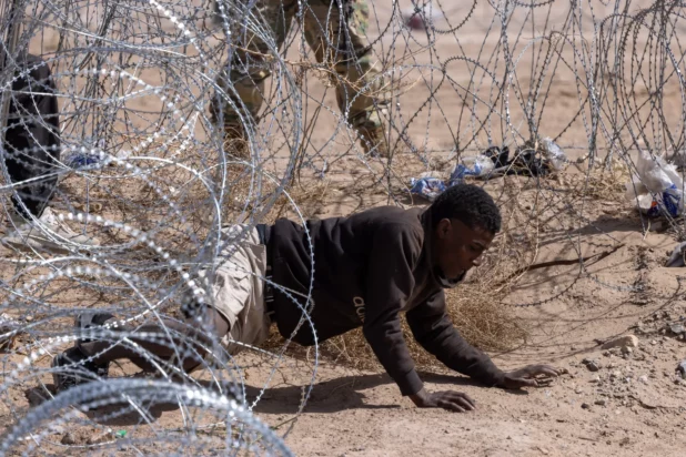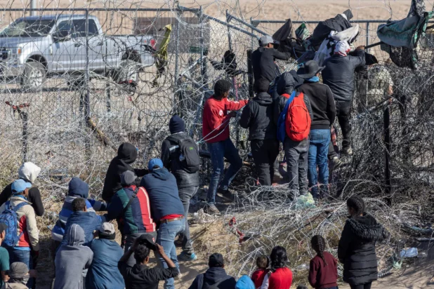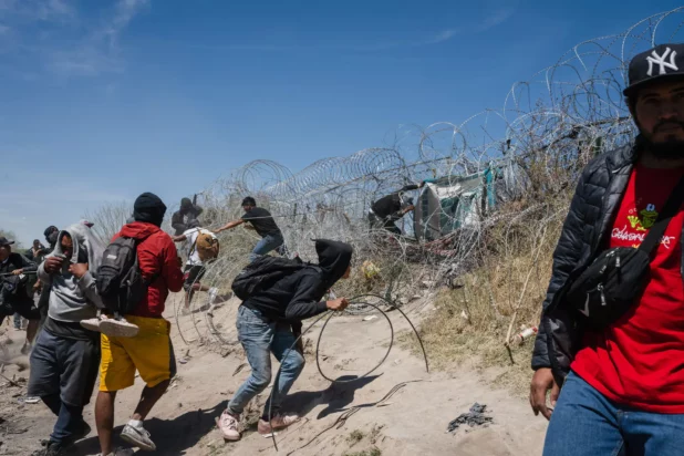The Post observed as the migrants pulled fencing away and pushed through the state’s concertina-wire barrier near a gate in the wall, entering the US illegally, near El Paso, Texas.