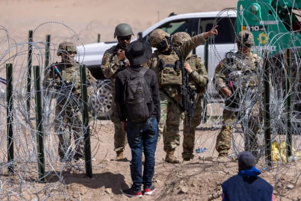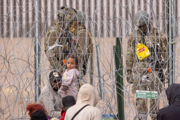 Razor wire and fencing have been erected near the border by troops from the National Guard and Texas Department of Public Safety to discourage people from crossing into the US illegally and to instead turn themselves in at points of entry.