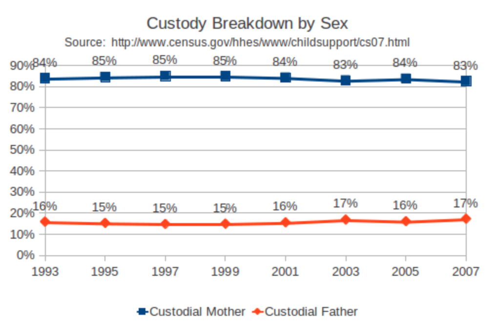 When you look at the rest of the breakdown, many of those groups are clearly non-perverts. The grandma and grandpa aren’t perverts – they’re trying to rescue the kids from an abusive single mother. The mother’s boyfriend and stepdad categories could be a pervert, of course, but I can guarantee that in the majority of those cases, the man is trying to protect the kids from the mother.