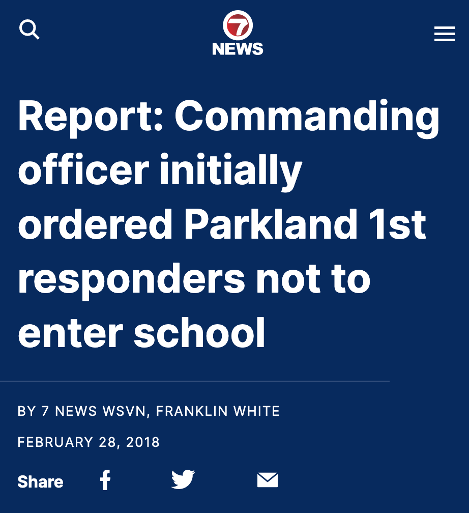But it was confirmed that at Parkland the police who were outside the school during the shooting were ordered not to go in by the Sheriff’s department, run by Scott Israel.