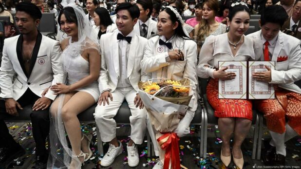 Hundreds of LGBTQ+ couples in Thailand married on Thursday as the kingdom’s equal marriage law went into effect after decades of campaigning by activists.