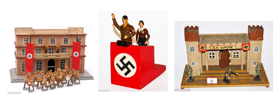 Again, there is absolutely zero substance here. The toys are just presumed evil because they are associated with the Third Reich. It’s not like they depict hook-nosed rabbis or shrunken heads and human soap, they are simply figurines that reflect the national culture of that time period.