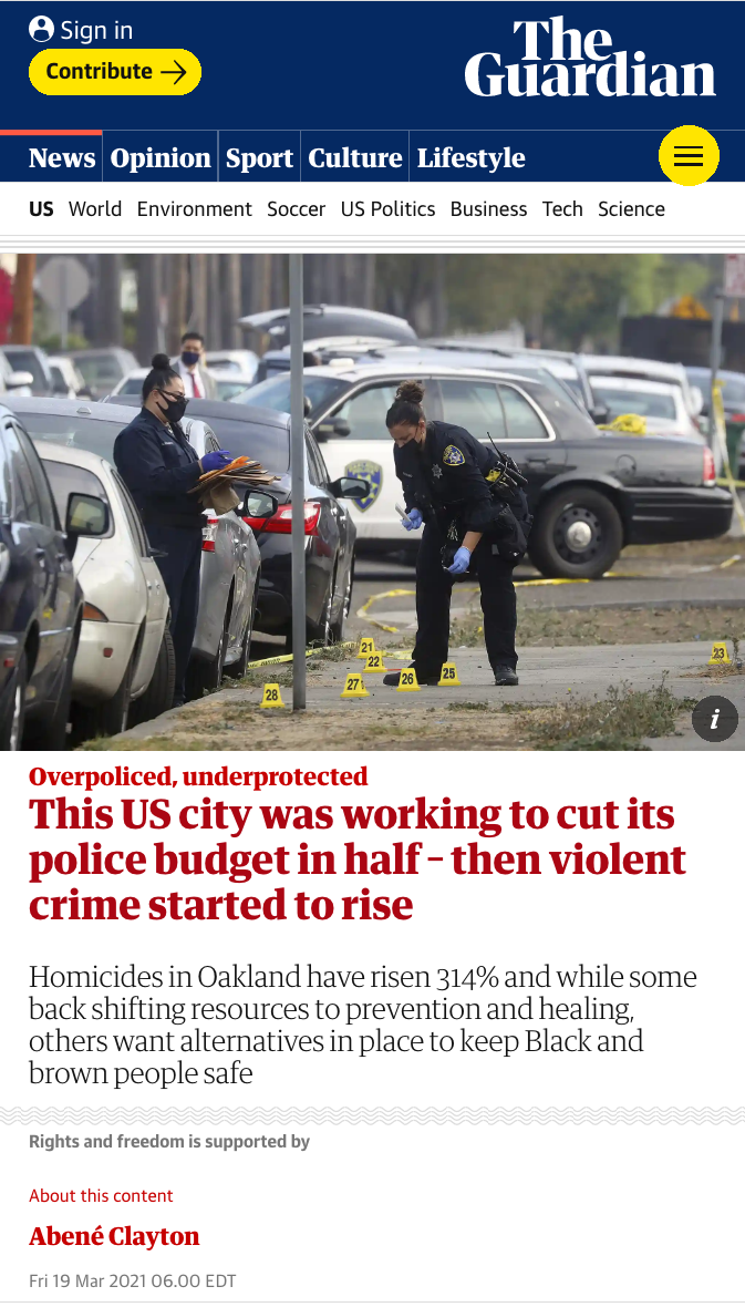 In 2020, Oakland vowed to cut the police budget in half. In 2021, Oakland has had a 230% increase in violent crime, with a 314% increase in homicides. Even as crime continues to skyrocket, BLM activists are calling for less policing. They are openly calling for more money to be cut, even as the blacks themselves are saying they want police to come back because everyone is getting shot.