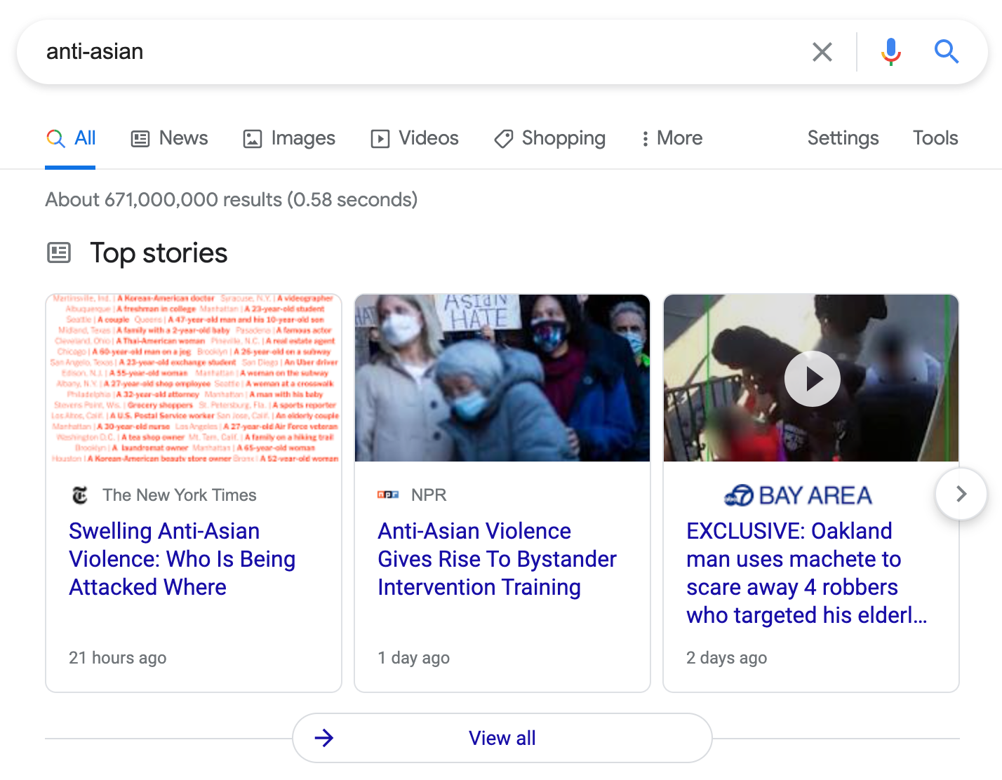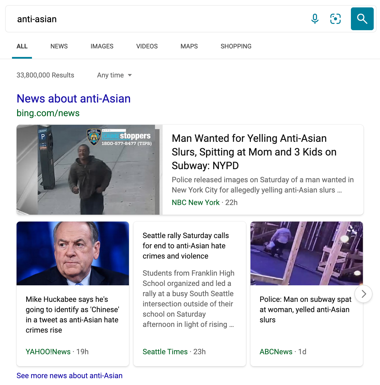 Here’s a Bing search for “anti-Asian”: