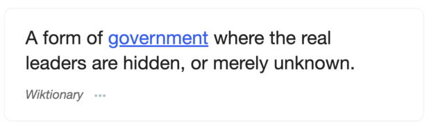 Imagine if this was the Middle Ages, and there was a king in a castle ruling the land, in total public view, sending out soldiers bearing his coat of arms, but when you asked a normal person who is in charge they said “no one knows.” And if you said “it sure looks like that king over there in the castle is in charge,” the king sent people to ruin your life by calling you an anti-monarchist. And then, imagine all the people denounced you as an evil anti-monarchist for saying the monarch is in charge.