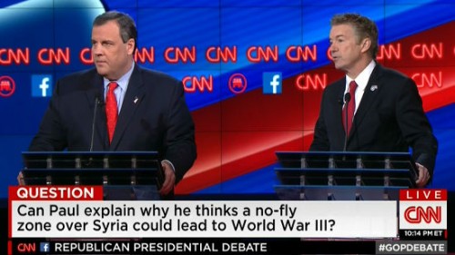 Pastor Mark Dankof spelled out the implications of the “no fly zone” being called for by most Republican candidates, as well as by Hillary Clinton. Of course it would mean shooting down Russian jets, a point made explicit by Chris Christie. Only Rand Paul called him out on his insanity. Pastor Dankof explained the exasperation of Iranian and Russian observers of these “no fact zone” debates, who see the most blatent and easily disprovable lies get sold to the public as gospel.