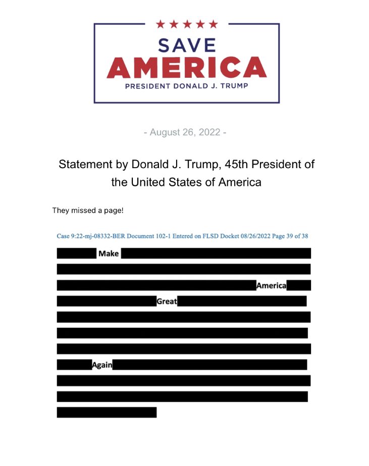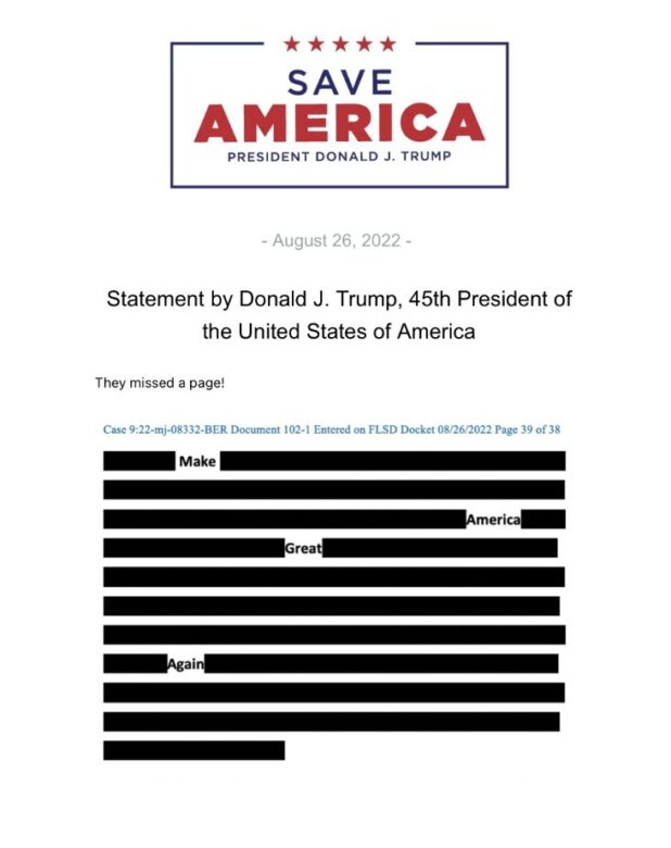 The highly redacted FBI affidavit justifying the raid makes clear the feds were looking for classified government secrets they believed were on the premises of Trump’s Mar-a-Lago golf estate.