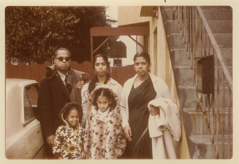 Growing up in Canada, with only her mother raising her, she was taught that she was an Indian Hindu. Her experience certainly appears to have been very Indian. This is her in the middle: