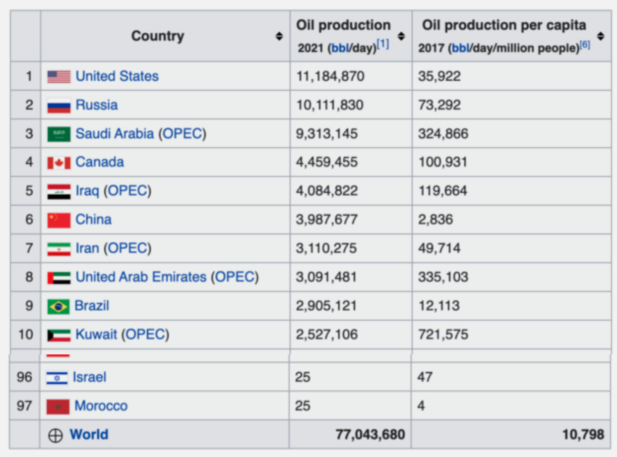 Meanwhile, Russia produces nearly 15% of the world’s oil.